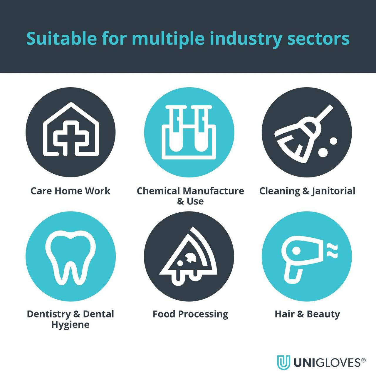 - Latex free nitrile with a chlorinated finish for easy wear and comfort; powder free to stop hands from drying out and designed for use in dentistry, healthcare, piercing/tattoo and hair and beauty